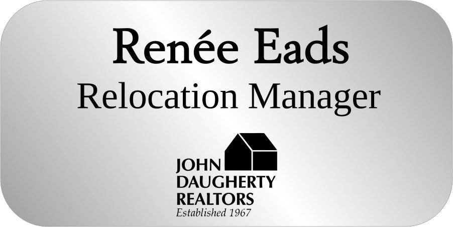 John Daugherty Realtors 1.5" x 3" Silver Aluminum Name Tag