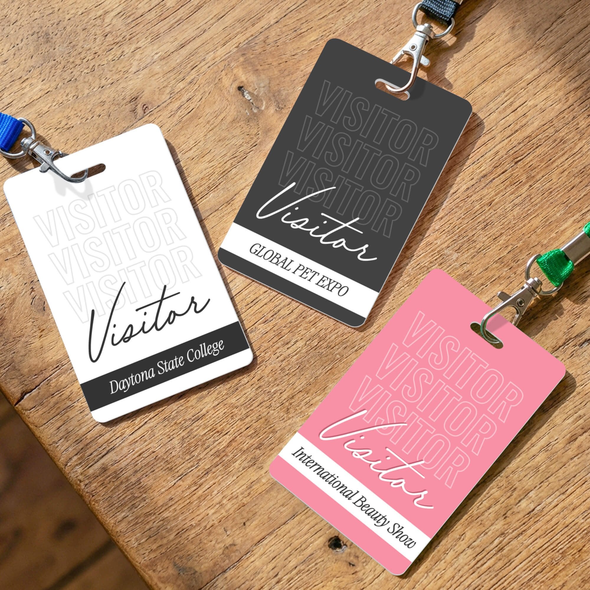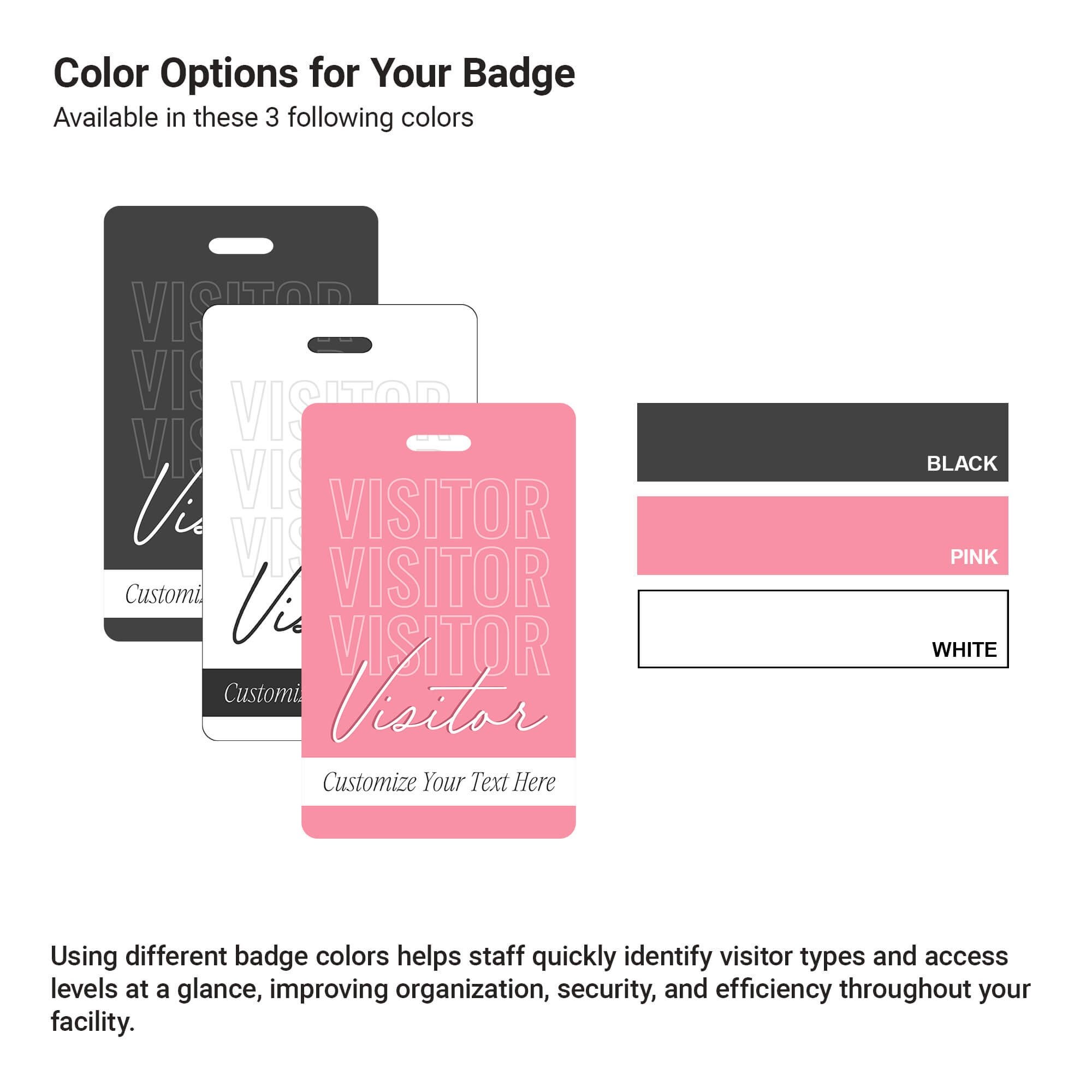 - Modern Outline Design: Features a bold, repeating "VISITOR" pattern that ensures immediate recognition from across the room.