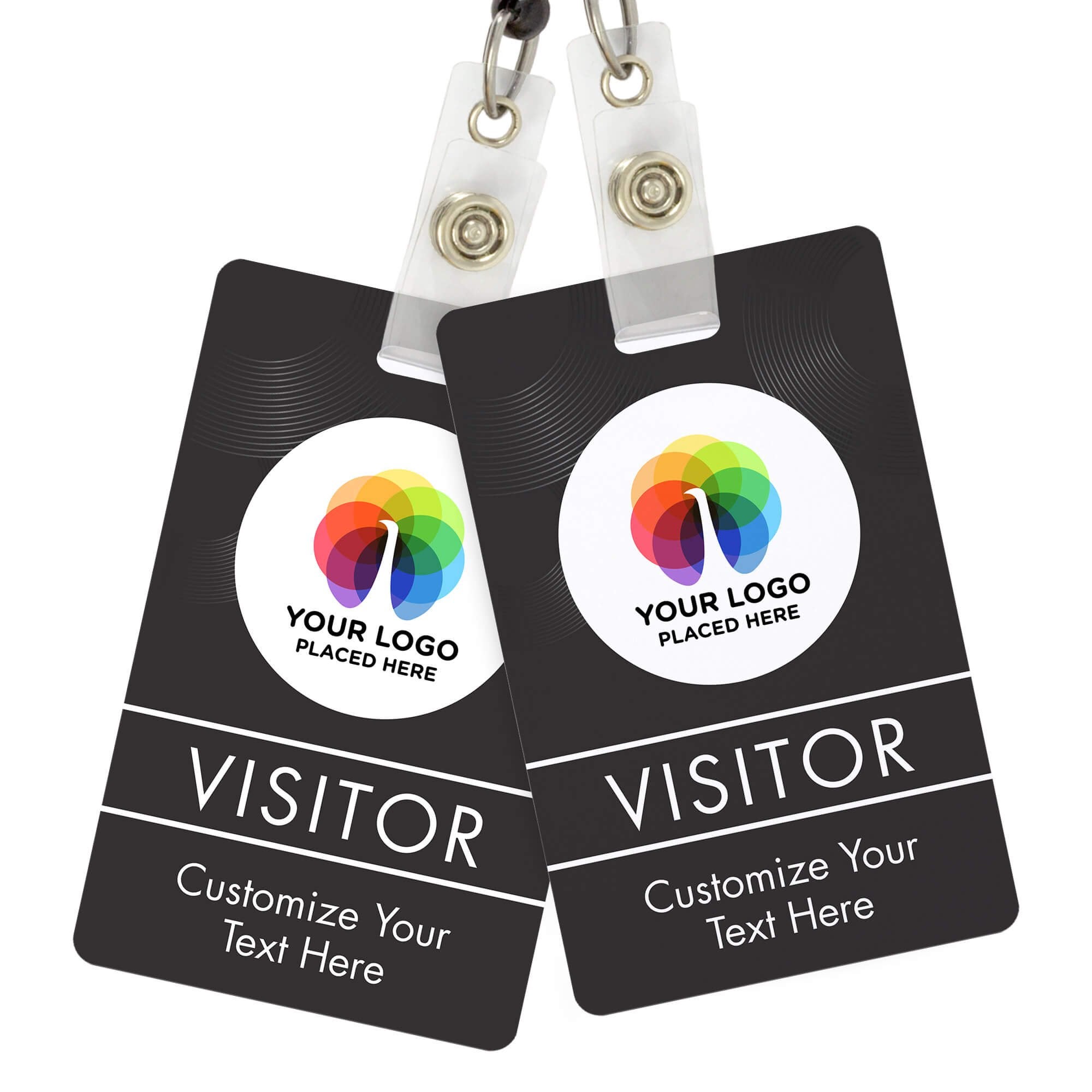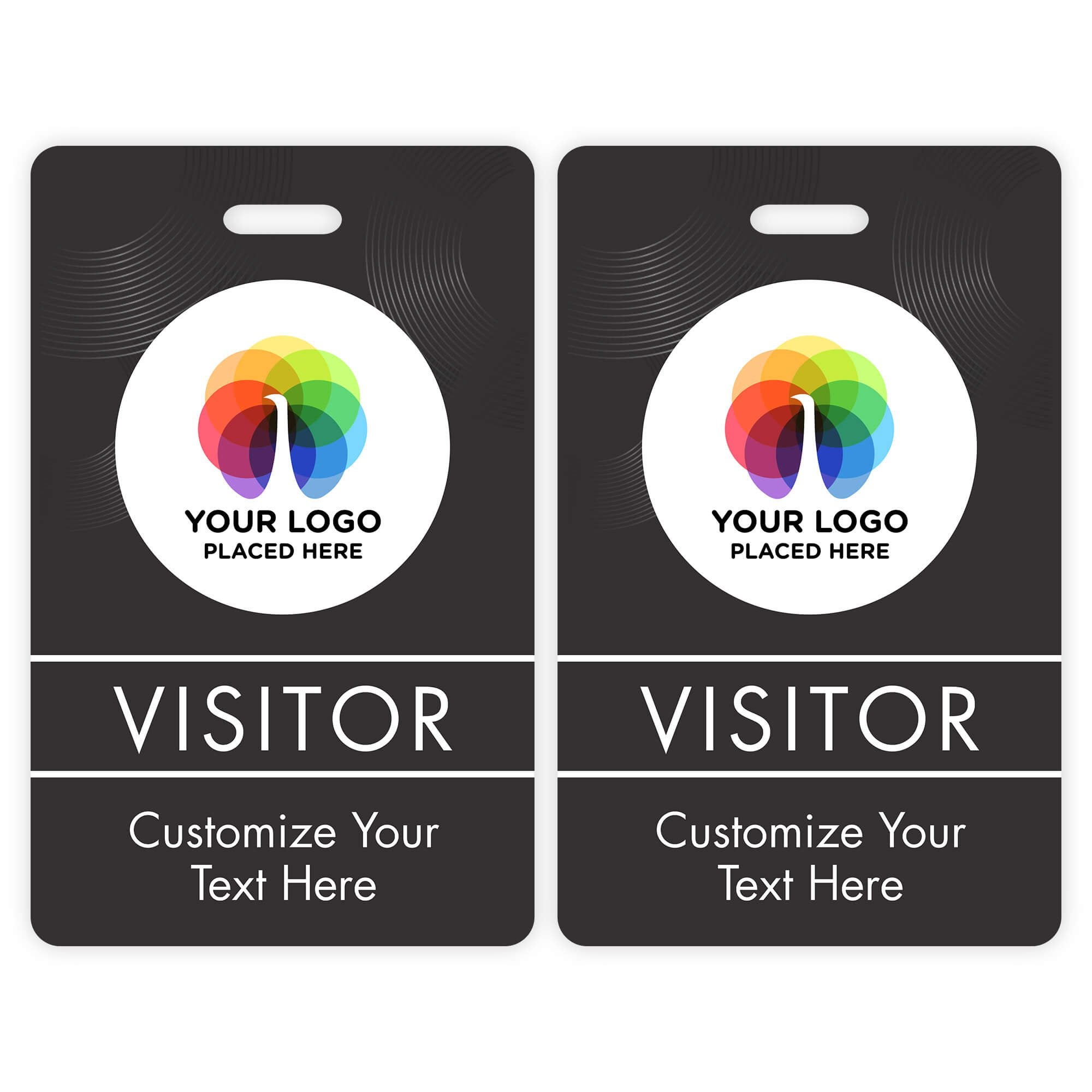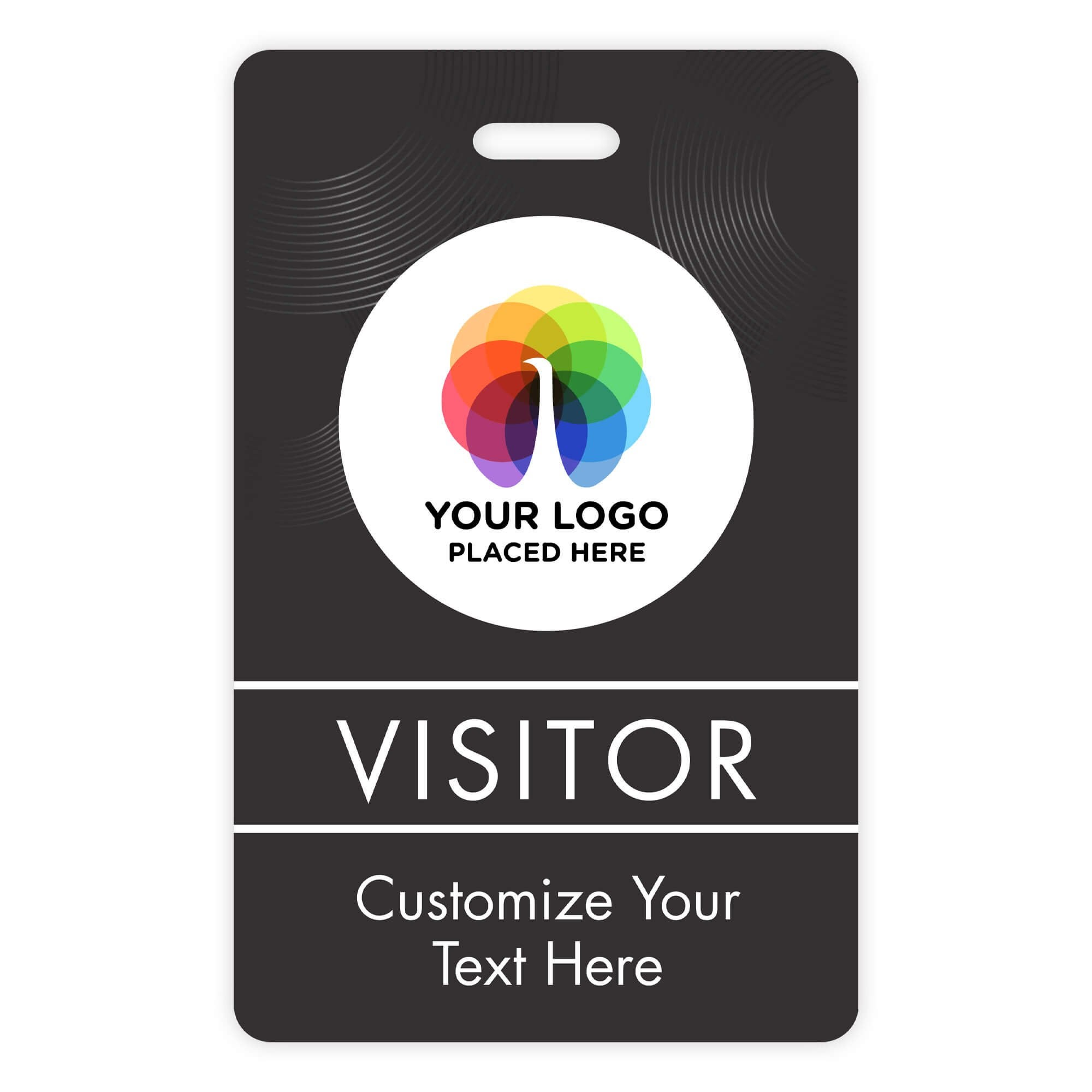 - Custom Logo Placement: Large circular logo area prominently displays your company logo, making every visitor badge an extension of your brand.